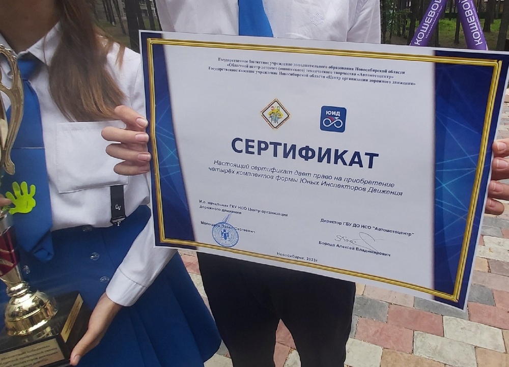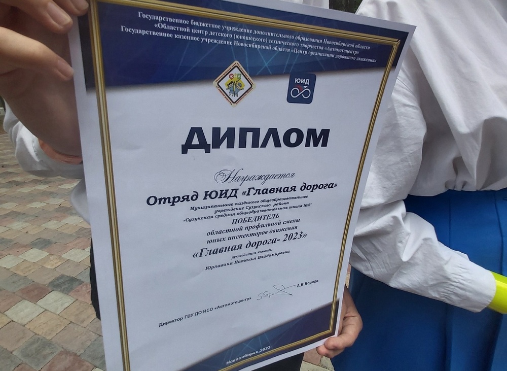 Абсолютным победителем профильной смены «Главная дорога-2023» стал отряд ЮИД «Главная дорога» МКОУ Сузунского района «Сузунская средняя общеобразовательная школа №2». Команде торжественно вручен Кубок победителя профильной смены и сертификат на приобретение четырех комплектов форменного обмундирования ЮИД.