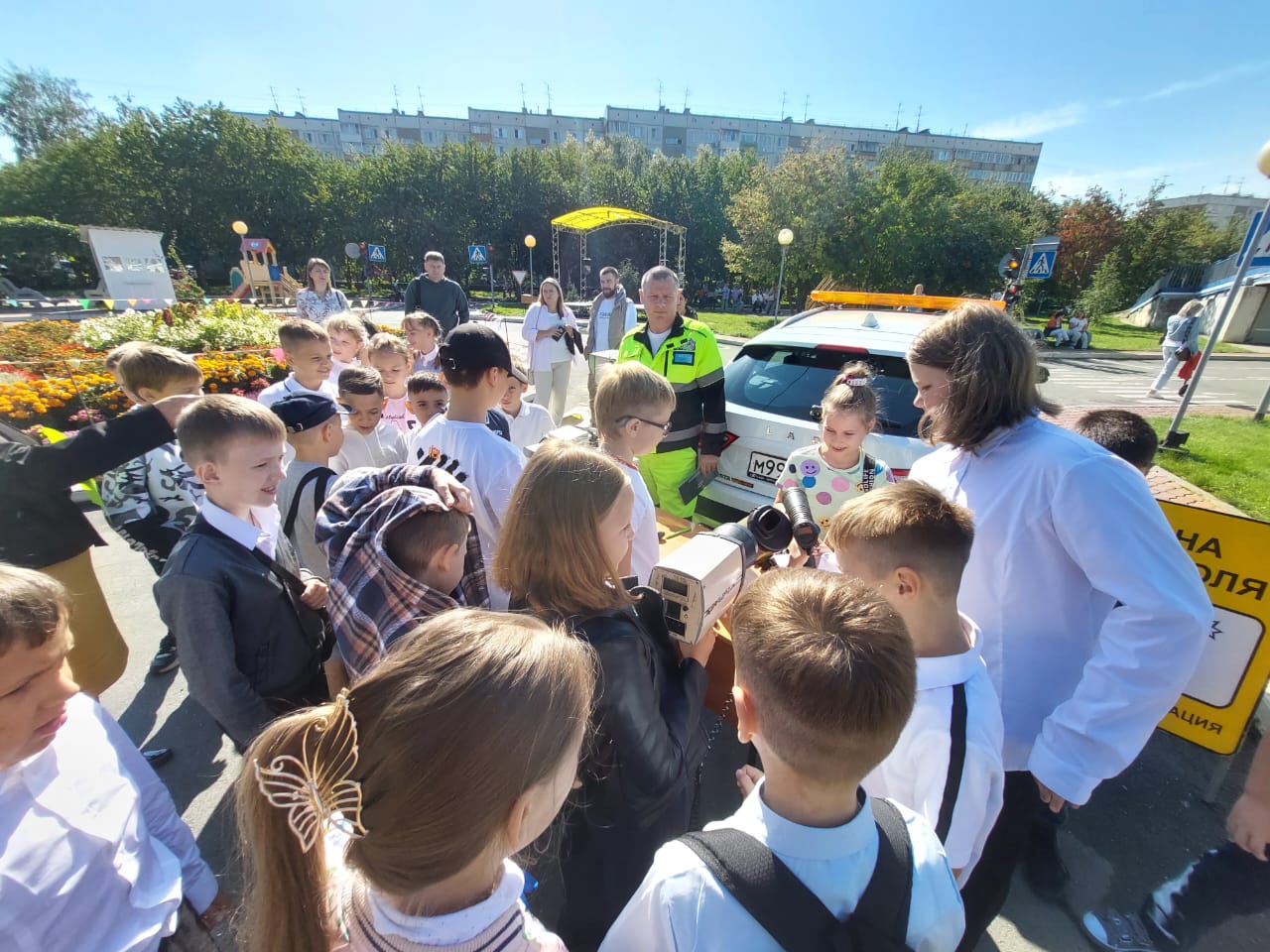 1 сентября сотрудники регионального ЦОДД приняли участие в праздничных мероприятиях, приуроченных к началу учебного года. Продемонстрировали детям служебные автомобили, на которых ежедневно несут службу. Специалисты центра рассказали о принципах работы оборудования, их необходимости в обеспечении безопасности и предупреждении нарушений участниками дорожного движения и подарили детям светоотражающие брелки.