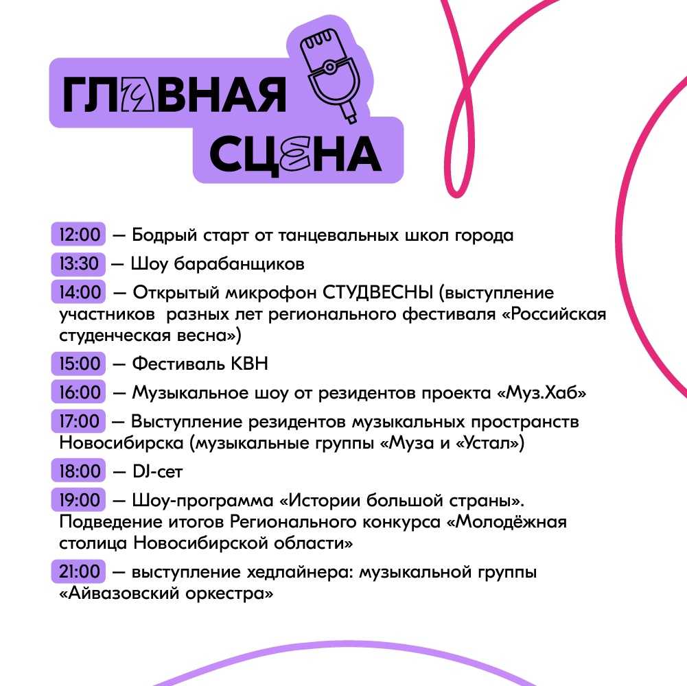 Подробная программа празднования Дня молодёжи, который пройдёт 27 июля 2024 года в Новосибирске