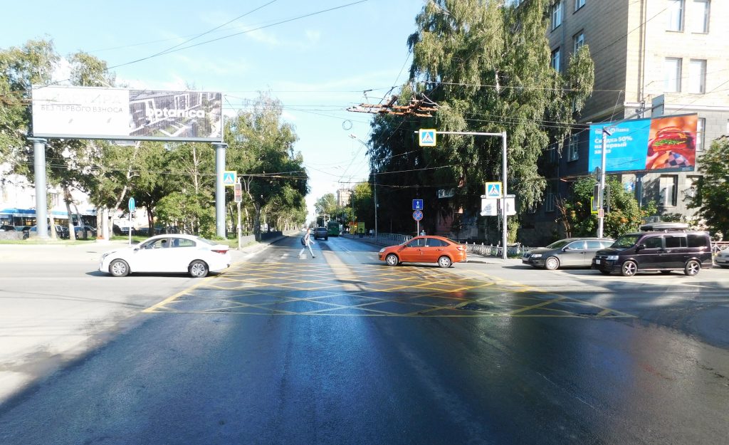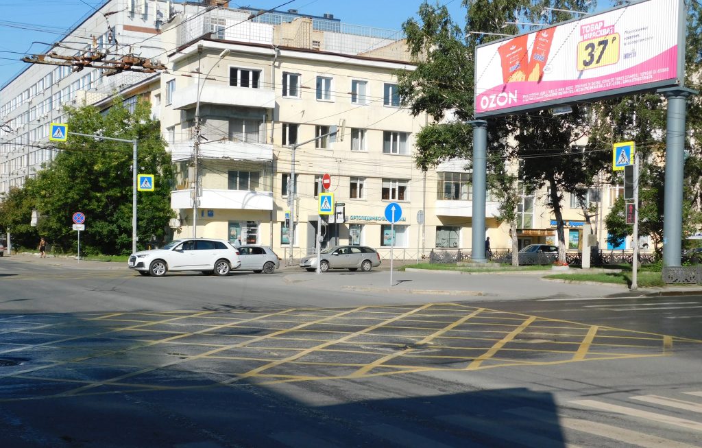 Разметка наносится в местах, где преобладает интенсивный трафик движения, приводящий к нарушениям и регулярным заторам.