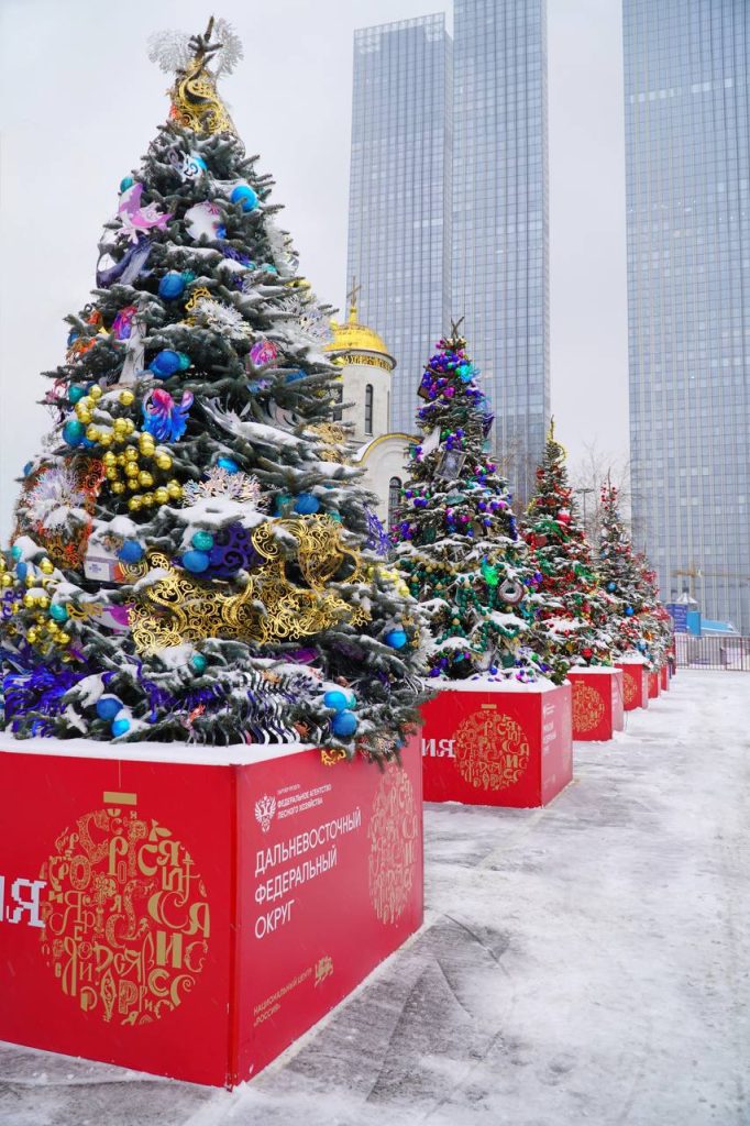 Также в предновогодние дни площадки центра украсили праздничные деревья по числу федеральных округов нашей страны. В убранстве елей использовали элементы народных художественных промыслов, наследия и достояния народов России. Также гости могут побывать на масштабной новогодней ярмарке.