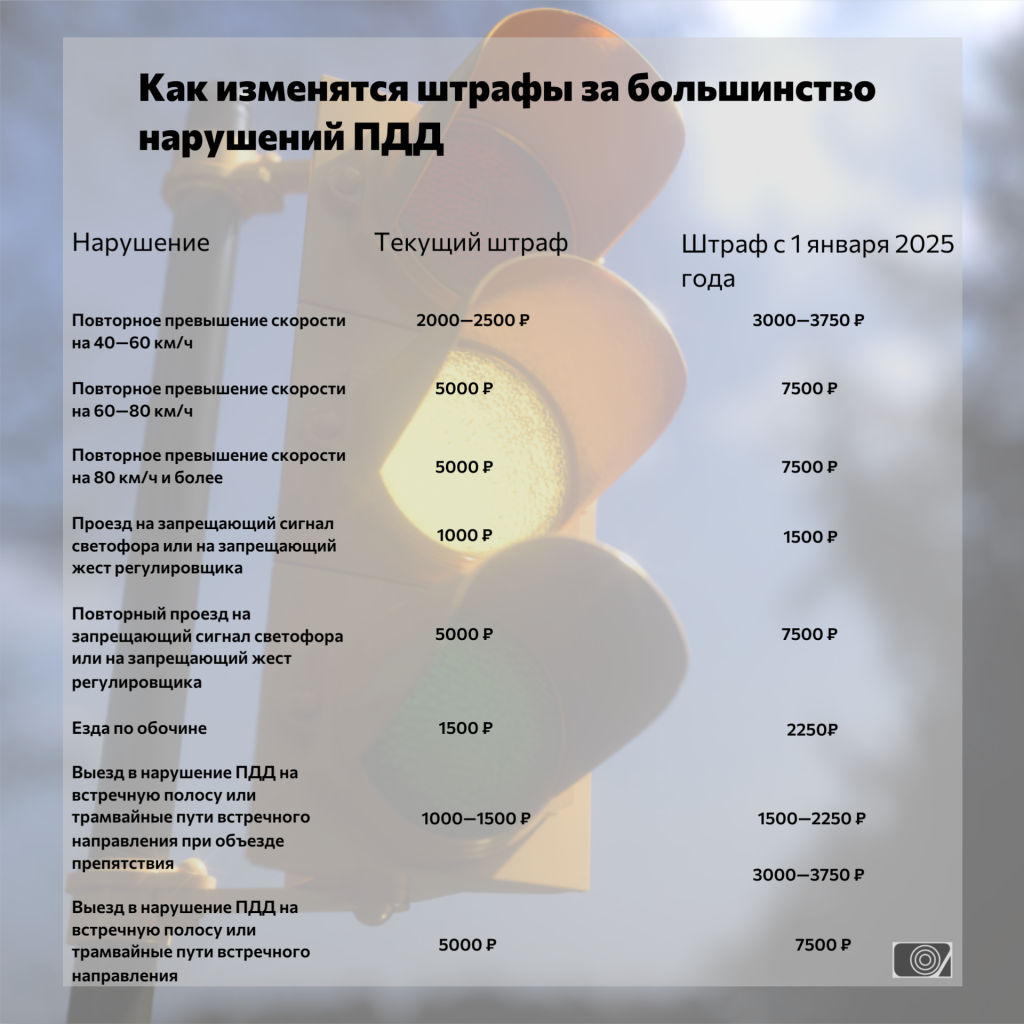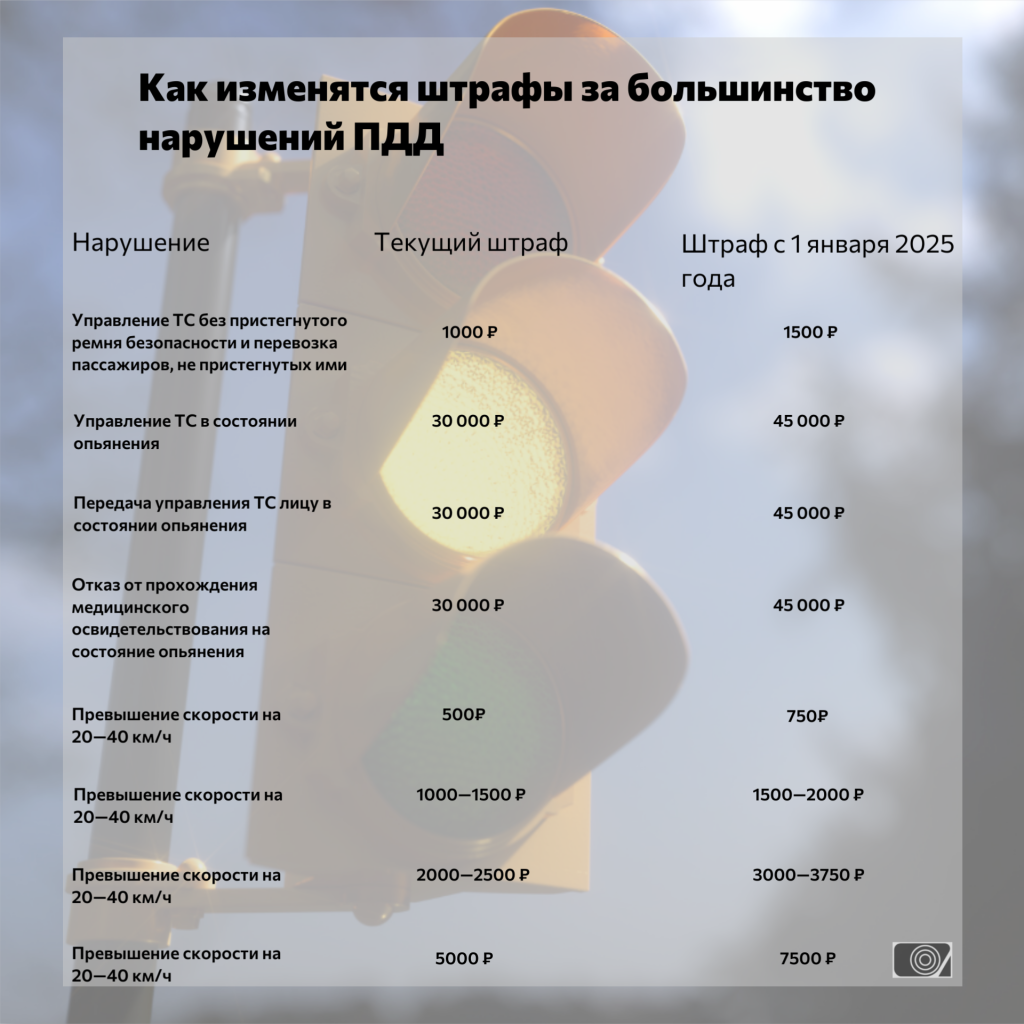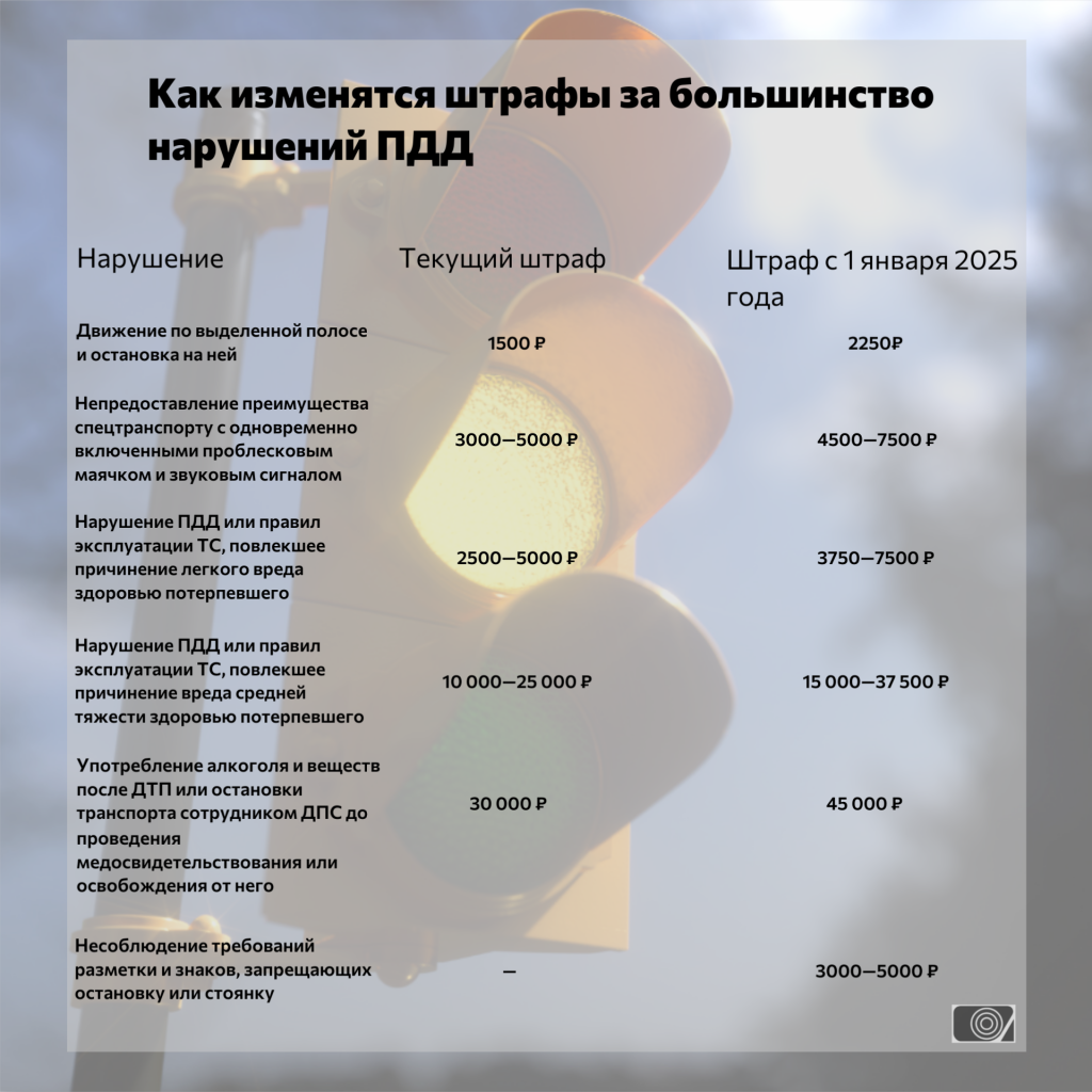 Сделали для вас подробную таблицу изменения штрафов за большинство нарушений (стоимость указана без учёта льготы за оперативную уплату).