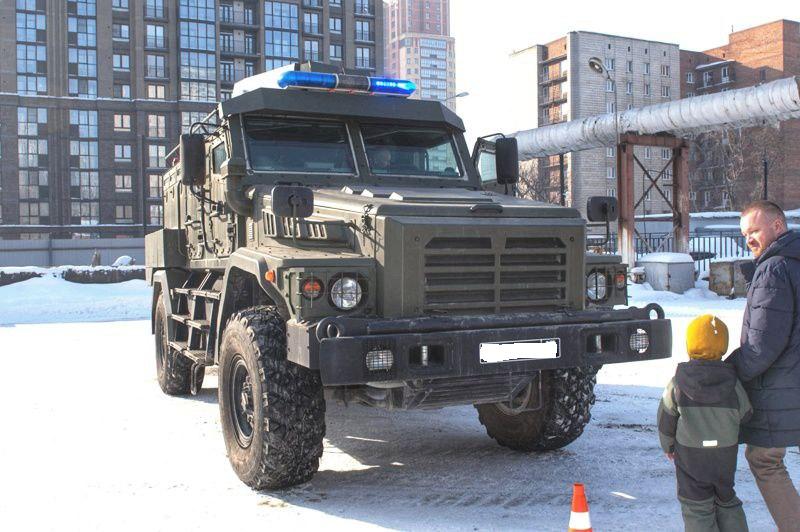 На экспозиции были представлены автомобили, которые обеспечивают безопасность и помогают людям в различных ситуациях на дороге – мобильные комплексы фотовидеофиксации, «Дорожный патруль», автомобили ДПС и службы аварийно-спасательных работ, а также бронемашина Росгвардии, предоставленная отрядом СОБР «Сибиряк».