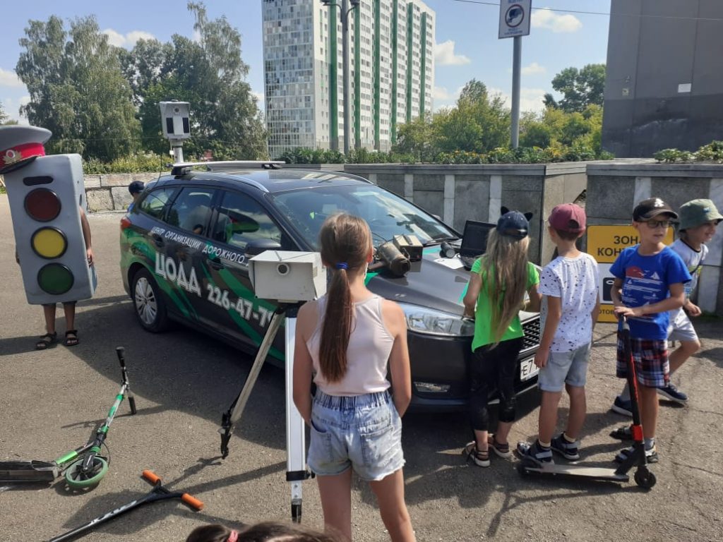 21.07.2021 Центр организации дорожного движения Новосибирской области совместно с сотрудниками Госавтоинспекции провели мероприятие «Безопасный двор» на территории МБУК Дворца культуры «Сибтекстильмаш» в Ленинском районе. В непосредственной близости дети могли рассмотреть служебный автомобиль, на котором установлена камера фото-видеофиксации нарушений ПДД. Специалисты центра рассказали о принципах работы оборудования, их необходимости в обеспечении безопасности и предупреждении нарушений участниками дорожного движения и рассказали об истории возникновения фотовидеофиксации, а побывав в патрульном автомобиле, почувствовали себя настоящими сотрудниками ЦОДД.. Ребятам напомнили правила безопасного поведения на дорогах.